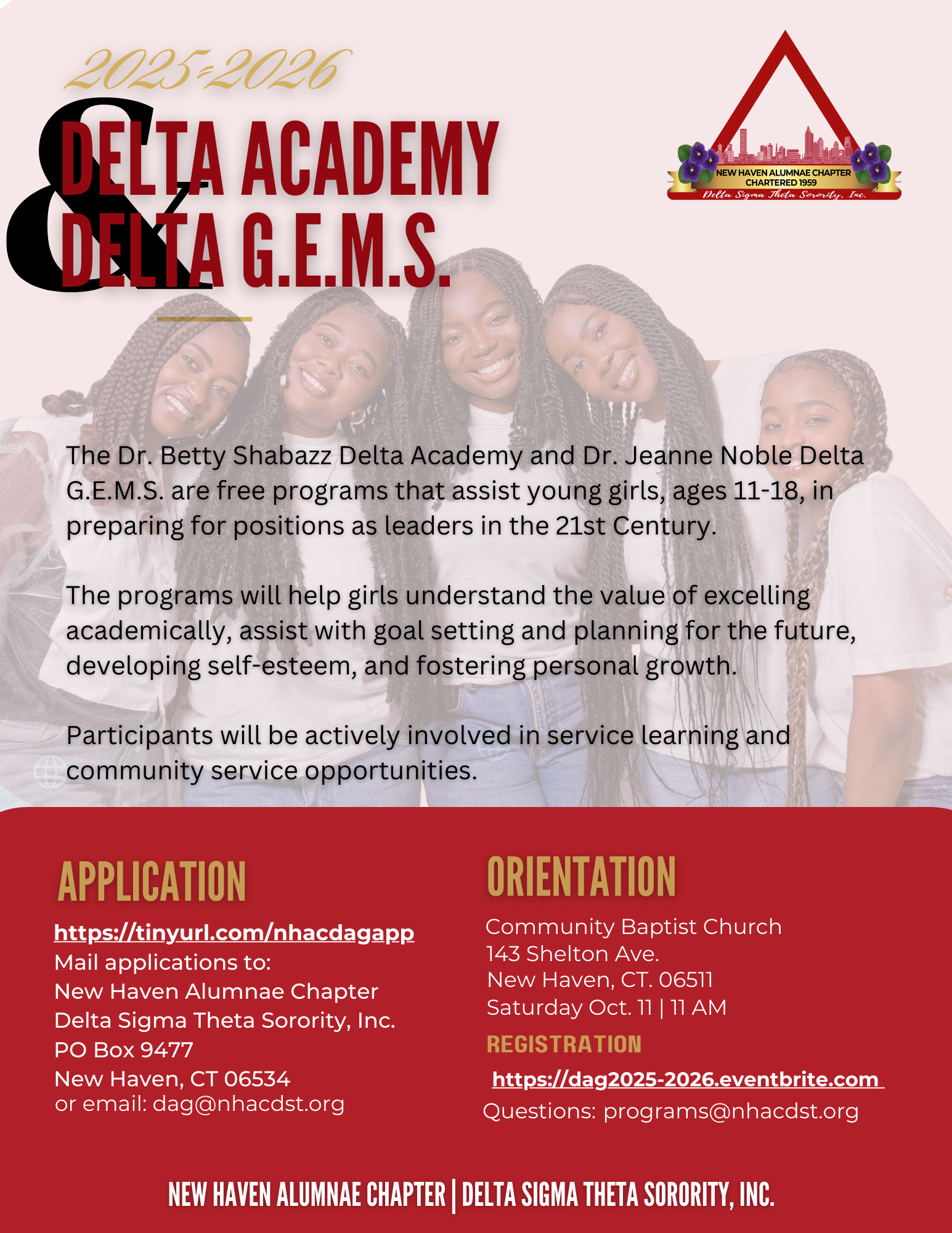 Building upon the premise on which Delta Academy: Catching the Dreams of Tomorrow was created, Delta GEMS is a natural outgrowth and expansion for the continuation of our successful program implementation. Delta Academy was created to “Catch the Dreams” of African American at-risk, adolescent girls aged 11-14. Delta GEMS provides the framework to actualize those dreams through the performance of specific tasks and development of a “Can Do” attitude in high school girls ages 14-18.
